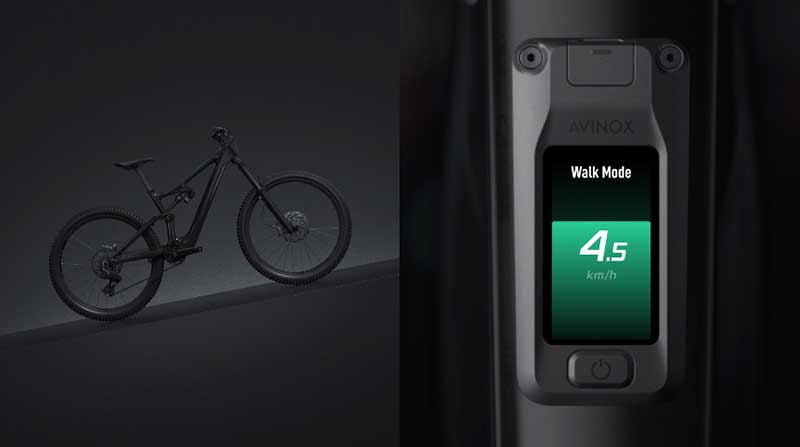 Avinox Drive System integra un’unità di misura inerziale (IMU) e un sensore di velocità delle ruote per offrire una assistenza alla camminata evoluta. Questa funzione permette di spingere la eBike con maggiore facilità anche su pendenze elevate o terreni irregolari. È sufficiente tenere premuto il pulsante con freccia verso il basso sul comando wireless sinistro, in qualsiasi modalità di guida, per attivare il supporto.